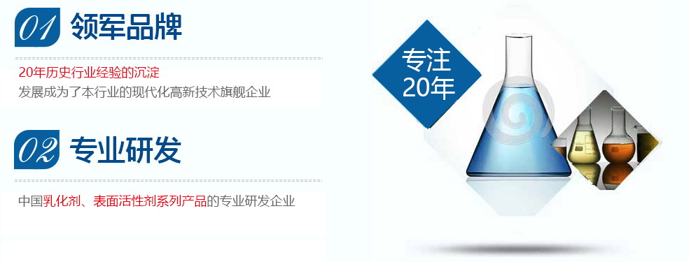 本公司依托淄博的化工區(qū)位優(yōu)勢,掛靠大中專化工院校及科研單位,專心致力于非離子表面活性劑的開發(fā)、應(yīng)用,是國內(nèi)較早從事研究、開發(fā)、生產(chǎn)非離子表面活性劑的廠家之一,主要產(chǎn)品有:烷基酚聚氧乙烯醚(OP、NP、TX)系列、脂肪醇聚氧乙烯醚(AEO)系列、(平平加)系列、失水山梨醇脂肪酸酯聚氧乙烯醚(吐溫系列)、失水山梨醇脂肪酸酯(斯盤系列)、椰子油二乙醇酰胺(6501)、滲透劑系列、十二烷基苯磺酸、脂肪醇聚氧乙烯醚AES、油酸、三乙醇胺、椰油酰胺丙基甜菜堿CAB-35、聚醚系列、添加劑系列、聚乙二醇系列、乳化劑酯醚系列等等,產(chǎn)品遠(yuǎn)銷全國各個地區(qū),客戶上千余家,乳化劑在用戶中享有很高的聲譽,市場占有率逐年攀升。近年來,企業(yè)...